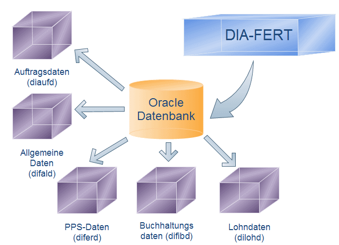 Die automatische Berechnung der PPM-Zahl, Termintreue, Liefererfüllung sowie die subjektiven Merkmale können vom Anwender individuell definiert werden. Sämtliche Statistiken und Verkehrszahlen sind in dem Info-Modul zusätzlich enthalten. Durch die frühe Einführung von ORACLE als relationale Datenbank (1984 - 1986) kann IfaI auf entsprechende Datenbanklösungen und praktische Erfahrungen im Umgang mit Datenbanken verweisen. DIA-FERT wurde 2003 mit um den eigenen WorkFlow ergänzt, welcher Ihre Geschäfts-Prozesse optimiert und somit Kosten spart. Die Datenbank-Organisation ist nach der Anwendung modular gegliedert: